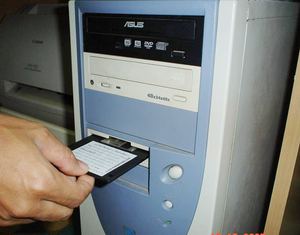 7. * ใส่แผ่น Diskette (แผ่นสี่เหลี่ยม) ที่มาพร้อมกับ CD เข้าไปที่ไดร์ฟ A: